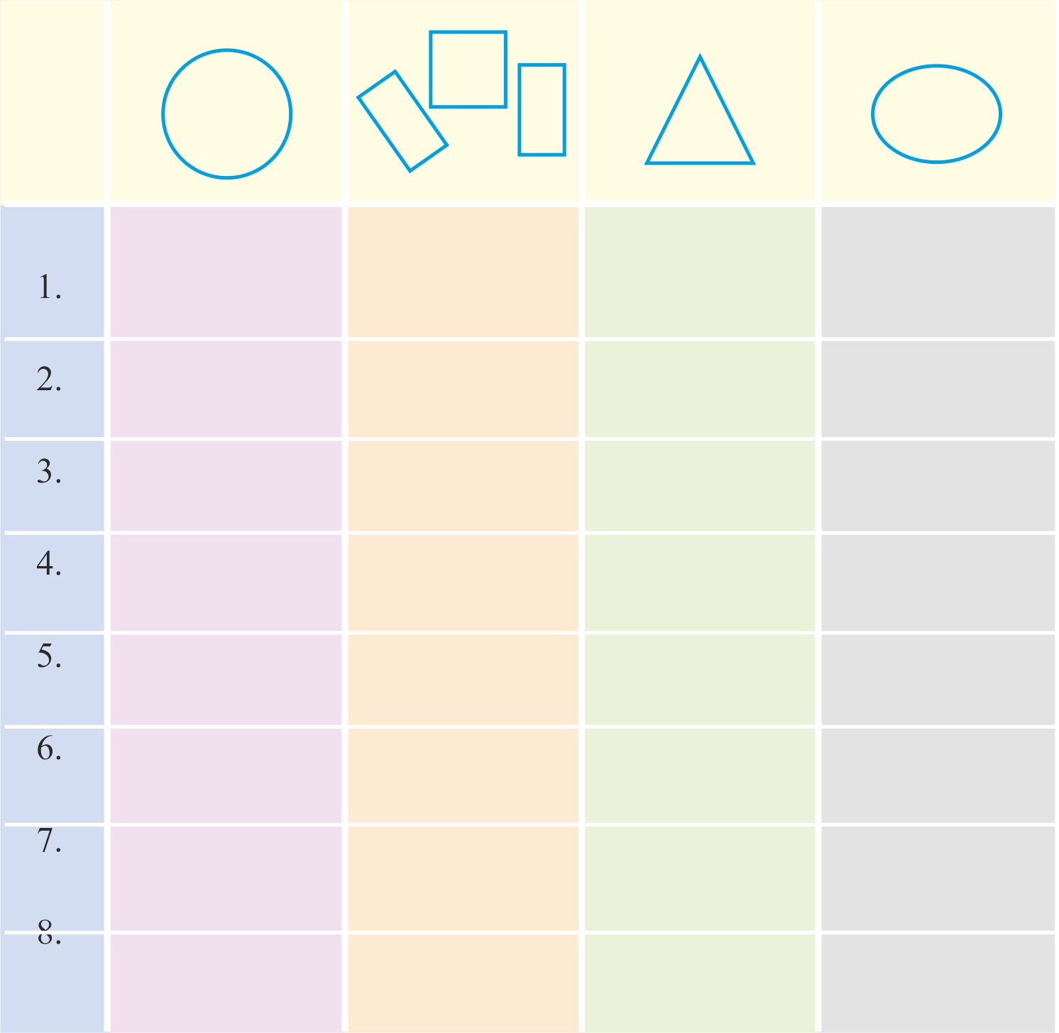 * ट्रेस की हुई हर एक चीज़ की आकृति देखो। देखो कि क्या यह आकृति यहाँ दी गई आकृति जैसी दिखती है। इन आकृतियों के नीचे चीज़ों के नाम लिखो।