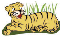 The tiger's green eyes glistened as he watched the tiger cub. The tiger cub was frightened. He could not hide or run. He let the frog hop away. The tiger crept up closer to the little tiger cub.