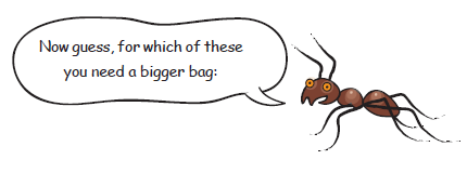 Different activities will help children to guess and estimate weights of familiar things they see at home, at the grocery shop, etc. Guessing the weights of animals is an enjoyable exercise and helps them get a feel of larger weights. Teachers must bring a balance to class and give them a chance to weigh things themselves.