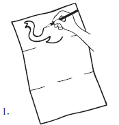 - एक बच्ची कागज़ के पहले हिस्से में किसी जानवर का मुँह बनाए। कागज़ को मोड़ कर अपने चित्र को छुपा ले।