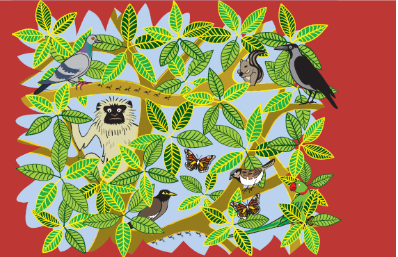 किसी पेड़ के नीचे कुछ देर बैठो। ध्यान से देखो , पेड़ पर और उसके आस - पास कौन - कौन से जानवर हैं –