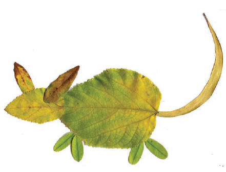 तुम भी अब सूखे पत्तों से अलग - अलग जानवरों के चित्र अपनी कॉपी में बनाओ।