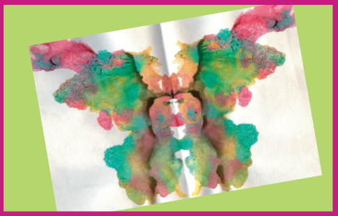 एक कागज़ को बीच में से मोड़ो। अब खोलकर अलग - अलग रंगों की कुछ बूंदें डालो। कागज़ को फिर से मोड़कर दबा दो। खोलकर देखो क्या बना ?
