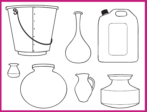 तुम्हारे घर में यदि किन्हीं और चीज़ों में पानी भरकर रखा जाता है , तो कॉपी में उनका चित्र बनाओ और नाम भी लिखो।