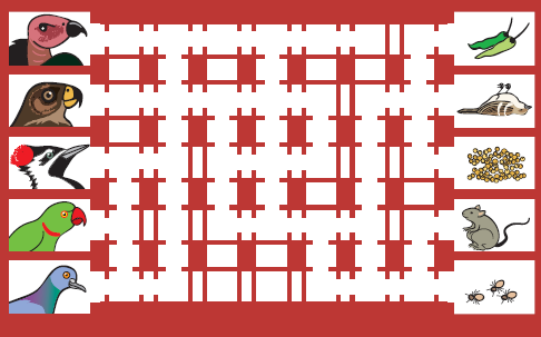 चित्र में दिए गए पक्षियों को उनके भोजन के साथ जोड़ो।