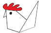 एक छोटे से काले कागज़ को गोल काटकर मुर्गे की आँख की जगह चिपका दो।