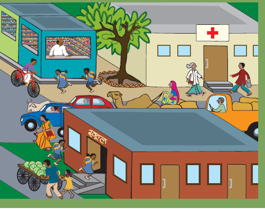 एक्टिंग करके दिखाओ — किसी चौराहे पर , हाट - बाज़ार में लोग क्या - क्या कर रहे होते हैं।