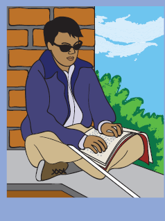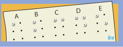 जो लोग देख नहीं सकते उनके पढ़ने का एक खास तरीका है , जिसे ब्रेल कहते हैं। ब्रेल एक मोटे कागज़ पर एक नुकीले औज़ार से बिंदु बना कर लिखा जाता है। ब्रेल कागज़ पर हाथ फेर कर पढ़ा जाता है कि उस पर क्या लिखा है।