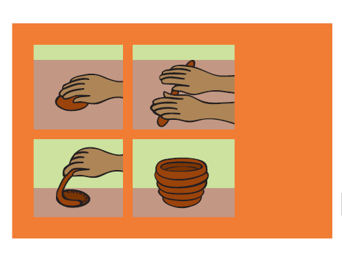 चित्र को देखकर इस तरह से बर्तन बनाओ।