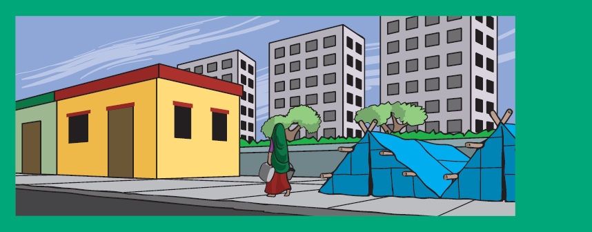 दिल्ली भारत की राजधानी है। दिल्ली और उसके जैसे बड़े शहरों में , गाँवों और कस्बों से लोगों को काम की तलाश में आना पड़ता है। ये लोग अक्सर शहर में ही बस जाते हैं। यहाँ रहने वाले लोग ज़्यादा हैं और जगह कम। बहुत लोगों के पास मकान होते ही नहीं। उन्हें झुग्गी - झोपड़ियों में रहना पड़ता है — और कई लोगों के पास वह भी नहीं। लोग जहाँ जगह मिले वहीं सो जाते हैं — सड़क पर , फुटपाथ पर , स्टेशन पर ... । वाकई शहरों में घर की बहुत बड़ी समस्या है।