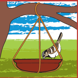 मिट्टी का एक चौड़े मुँह का बर्तन लो। बर्तन को रस्सी से बाँधकर लटकाओ , जैसा चित्र में दिखाया है। अब उस बर्तन में पानी डालकर उसे किसी पेड़ की शाखा पर या घर के बाहर किसी खूटी पर टाँग दो। उसमें रोज़ पानी भरो। देखो , पानी पीने के लिए कौन - कौन से पक्षी वहाँ आते हैं ?
