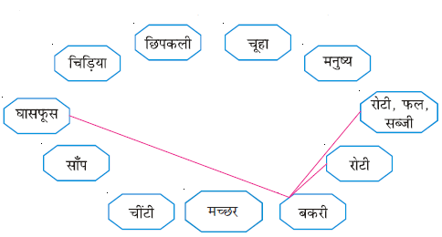 छिपकली चिड़िया चूहा मनुष्य घासफूस रोटी , फल , सब्जी साँप रोटी चींटी मच्छर बकरी