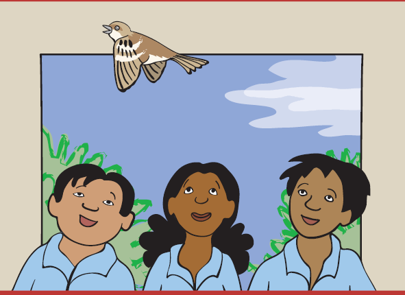 - बच्चों ने देखा एक चिड़िया उनकी कक्षा में चक्कर लगा रही है। ☐