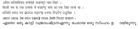 यहाँ पंचतंत्र की एक कहानी की एक पंक्ति दी गई है। यह पंक्ति कई भाषाओं में लिखी है।