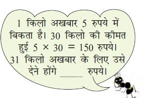 1 किलो अखबार 5 रुपये में बिकता है। 30 किलो की कीमत हुई 5 × 30 = 150 रुपये। 31 किलो अखबार के लिए उसे देने होंगे रुपये।
