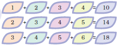 क्या तुम वह नियम ढूँढ सकते हो जिससे हर बार संख्याओं का जोड़ बराबर आ रहा है।