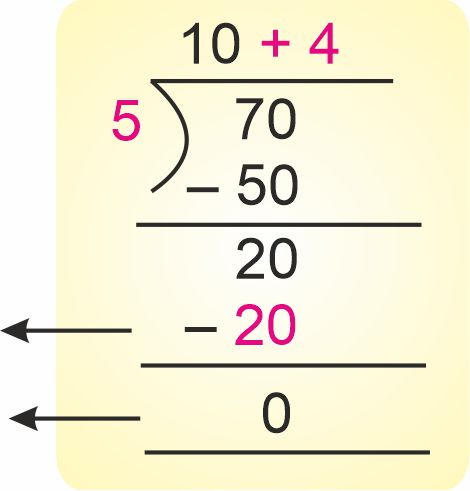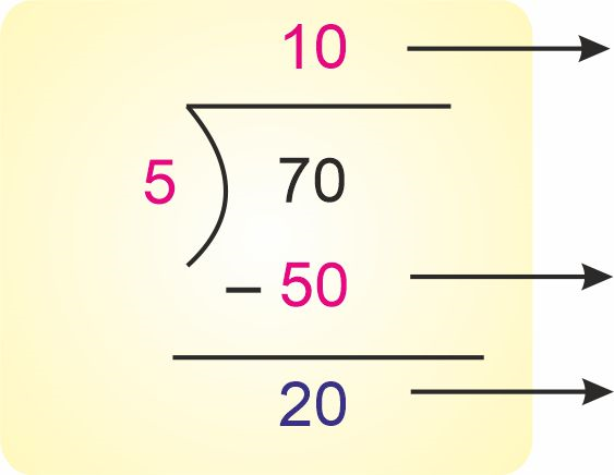 राशि और सीमा ने कुछ देर सोचा और बोले – हम जानते हैं कि यह कैसे होगा 70 ÷ 5.