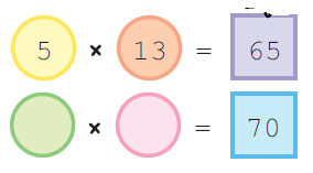 तुम्हें हर खाने में वह संख्या मिलेगी जो उसके साथ वाले गोलों में लिखी संख्याओं को (गुणा करने से आएगी।