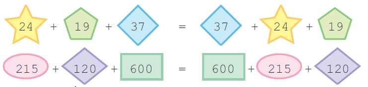 बच्चों से चर्चा करें कि संख्याओं का स्थान अदल-बदल करने से उनके जोड़ में कोई अंतर नहीं आता।