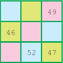 - इस वर्ग को 46 से 54 तक की संख्याओं से भरो।