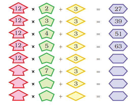 - कोई भी संख्या लो। उसे बारी-बारी से 2, 3, 4,............ से गुणा करो। हर बारी में 3 भी जोड़ो। उत्तर में कितना अंतर आता है? क्या यह अंतर हर बारी में एक जैसा है?