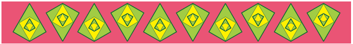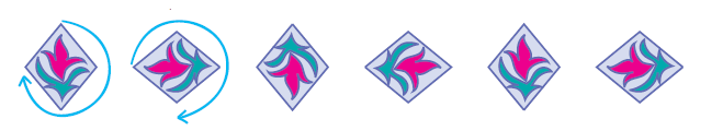 को देखो । इससे अलग-अलग पैटर्न बनाने के लिए इसे घडी की दिशा में घुमाव के हमने तीन अलग-अलग नियम बनाए हैं। बने हुए पैटर्न देखो।
