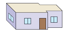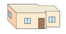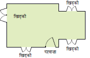 - नीचे दिए गए घर के फ़र्श के नक्शे को देखो। इस घर के गहरे चित्र में दरवाज़े और खिड़कियाँ बनाओ।