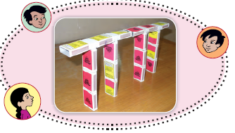 - माचिस की डिब्बियों से एक मॉडल बनाओ जो इस तरह का दिखे।