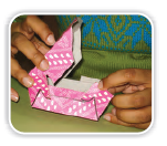 रम्या मिठाई खरीदने गई। दुकानदार ने कटा हुआ मोटा कागज़ लिया और तुरंत उसका सुंदर-सा डिब्बा बनाकर मिठाई को पैक कर दिया।