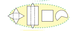 तुम इन आकृतियों को कागज़ पर ट्रेस करके काटो और मोड़ो तो कुछ आकृतियाँ एक बिना ढक्कन के खुले हुए डिब्बे में बदल जाएँगी।