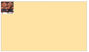 इस डाक टिकट का क्षेत्रफल 4 वर्ग सेंटीमीटर है। अंदाज़ा लगाओ, इस बड़ी आयत को ढकने के लिए ऐसे कितने डाक टिकट चाहिएँ।
