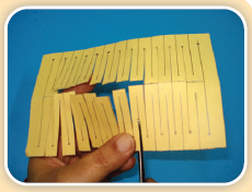 - अब इसमें से एक जैसे माप वाली पट्टियाँ काटो।