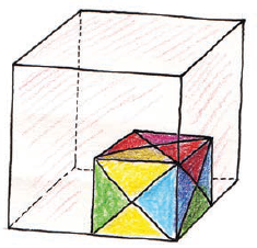 और सभी टुकड़ों को एक के अंदर एक जोड़कर एक घन बनेगा।
