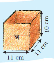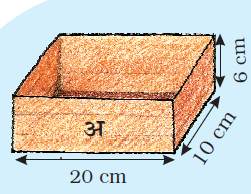 अ बक्से को देखो। पहली परत में हम 20 x 10 = 200 घन , लगा सकते हैं और 200 घन की 6 परतों को पैक किया जा सकता है। तो बॉक्स अ में हम 200 x 6 = 1200 घनों को लगा सकते हैं।