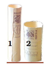 पोस्टकार्ड की चौड़ाई की तरफ़ से उसे मोड़ो जिससे कि । पाइप -1 बन सके। इसके जोड़ को टेप से जोड़ो। एक दूसरा पोस्टकार्ड लो और उसे पाइप -2 बनाने के लिए लंबाई की तरफ़ से मोड़ो।