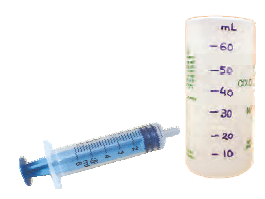 कक्षा IV में तुमने 250 mL मापने की एक बोतल बनाई थी। क्या तुम ऐसी मापक बोतल बनाने के तरीके सोच सकते हो जो कि 10 mL, 20 mL, 30 mL......... 60 mL माप सके? अपने दोस्तों से चर्चा करो। तारिक और मौली ने अपनी-अपनी मापक बोतल बनाईं। तारिक के पास एक पुराना इंजेक्शन सिरिंज पड़ा था। उसने इंजेक्शन से अपनी मापक बोतल बनाई। मौली ने दवाई की एक खाली बोतल का उपयोग किया।