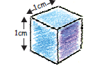 यह एक घन है जिसकी हर भुजा 1 cm है। देखो, तुम्हारी 'गणित का जादू' किताब 1 cm ऊँची है। तो अंदाज़ा लगाओ कि कितने 1 cm के घन मिलाकर तुम्हारी गणित की किताब जितनी जगह घेरेंगे।