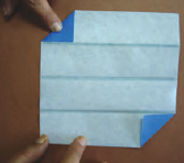 8. कागज़ को पलटो और उसे मोड़ो ताकि उस पर इस तरह के मोड़ के निशान आ जाएँ।
