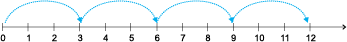 Start from 0, move 3 units at a time to the right, make such 4 moves. Where do you reach? You will reach 12.