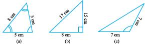 7. Draw five triangles and measure their sides. Check in each case, if the sum of the lengths of any two sides is always less than the third side.