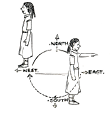 If you turn by a right angle in the anti-clockwise direction, which direction will you face? It is east again! (Why?)