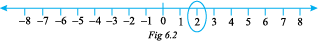 In order to mark + 2 on the number line, we move 2 points to the right of zero. (Fig 6.2)