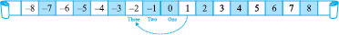 Example 2 : (a) One button is kept at – 3. In which direction and how many steps should we move to reach at – 9?