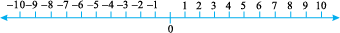 Draw a line and mark some points at equal distance on it as shown in the figure. Mark a point as zero on it. Points to the right of zero are positive integers and are marked + 1, + 2, + 3, etc. or simply 1, 2, 3 etc. Points to the left of zero are negative integers and are marked – 1, – 2, – 3 etc.