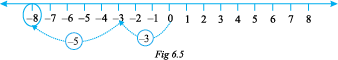 We have also seen that while using a number line for whole numbers, for subtracting 2 from 6, we would move towards left. (Fig 6.13)