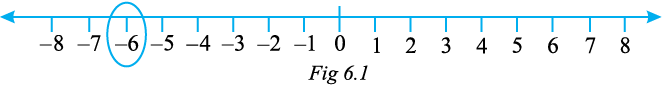 इस रेखा पर – 6 अंकित करने के लिए, हम शून्य के बाईं ओर 6 बिंदु (कदम) चलते हैं (आकृति 6.1)