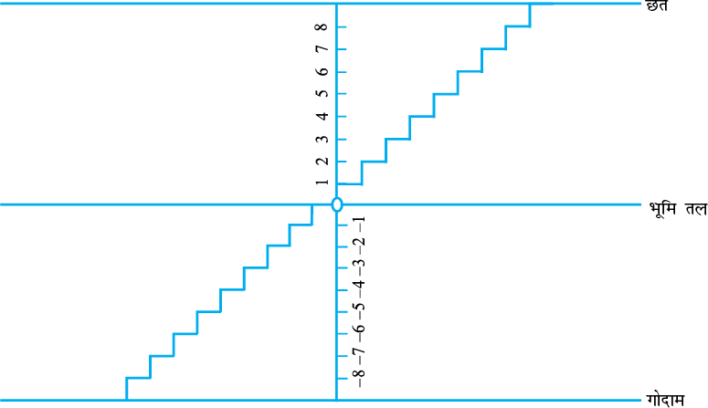 एक दिन रमन और इमरान कुएँ के अंदर गए और उन्होंने पाया कि उसमें जल स्तर तक 8 सीढ़ियाँ हैं। उन्होंने यह देखने का निर्णय लिया कि वर्ज़ा होने पर उस कुएँ में कितना जल आ जाएगा। उन्होंने इस समय के जल स्तर पर शून्य अंकित किया और उसमें ऊपर की सीढ़ियों को क्रम से 1,2,3,4,... अंकित किया। वर्ज़ा के बाद उन्होंने देखा कि जल स्तर छठी सीढ़ी तक बढ़ गया है। कुछ महीने बाद, उन्होंने देखा कि जल स्तर शून्य के चिह्न से तीन सीढ़ी नीचे पहुँच गया है। अब वे जल स्तर के गिरने को संगत सीढ़ियों से अंकित करके देखना प्रारंभ करने के बारे में सोचने लगे। क्या आप उनकी सहायता कर सकते हैं?