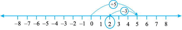 इस प्रकार, हम पाते हैं कि एक धनात्मक पूर्णांक जोड़ने के लिए, हम संख्या पर दाईं ओर को चलते हैं तथा एक ऋणात्मक पूर्णांक को जोड़ने के लिए हम संख्या रेखा पर बाईं ओर को चलते हैं।