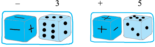 दूसरी ओर, यदि सलमा 1 पर थी और थैले में से नीला पासा निकालती है, जिसे फेंकने पर उसे संख्या 3 प्राप्त होती है, तो इसका अर्थ है कि वह 1 के बाईं ओर 3 स्थान चलेगी। इस प्रकार, वह – 2 पर पहुँच जाएगी।
