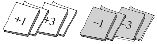 प्रारंभ में, वे दोनों शून्य चिह्न पर एक-एक रंगीन टोकन रखती हैं। एक थैले में दो रंगीन पासे (dice) रखे हैं और वे एक के बाद एक निकाले जाते हैं। इन पासों में से एक पासा लाल रंग का है और दूसरा नीले रंग का। यदि पासा लाल रंग का है, तो उसे फेंकने पर जो संख्या प्राप्त होती है टोकन को उतने स्थान आगे बढ़ा दिया जाता है। यदि पासा नीले रंग का है, तो उसे फेंकने पर जो संख्या प्राप्त होती है, टोकन को उतने स्थान पीछे कर दिया जाता है। प्रत्येक चाल के बाद पासों को थैले में वापस रख दिया जाता है, ताकि दोनों व्यक्तियों को दोनों पासों को फेंकने के समान अवसर मिलें। जो 25वें चिह्न पर पहले पहुँचता है, उसे जीता हुआ माना जाता है। वह खेलना प्रारंभ करती हैं। रुचिका लाल पासा प्राप्त करती है और उसे फेंकने पर चार प्राप्त होता है। इस प्रकार, वह टोकन को पट्टी पर चार से अंकित स्थान पर रख देती है। सलमा भी थैले में से लाल पासा निकालती है और उसे फेंकनेे पर संख्या 3 प्राप्त करती है। इस प्रकार, वह अपने टोकन को तीन से अंकित स्थान पर रख देती है।